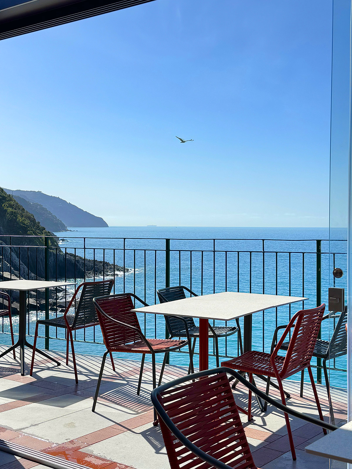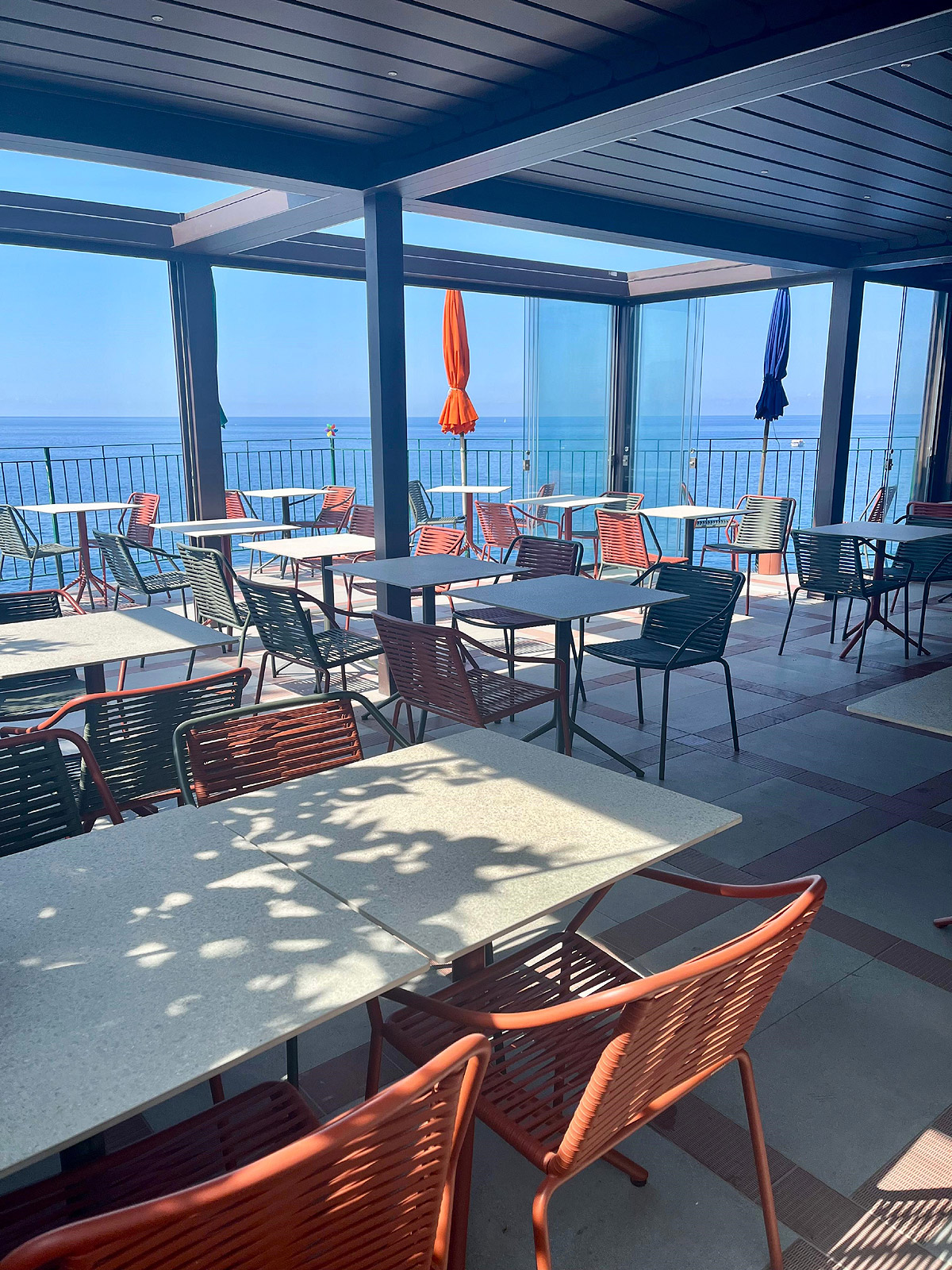 Seduti ai tavoli il panorama offerto non è comune, a tratti si ha l'impressione di essere sulla prua di un transatlantico.