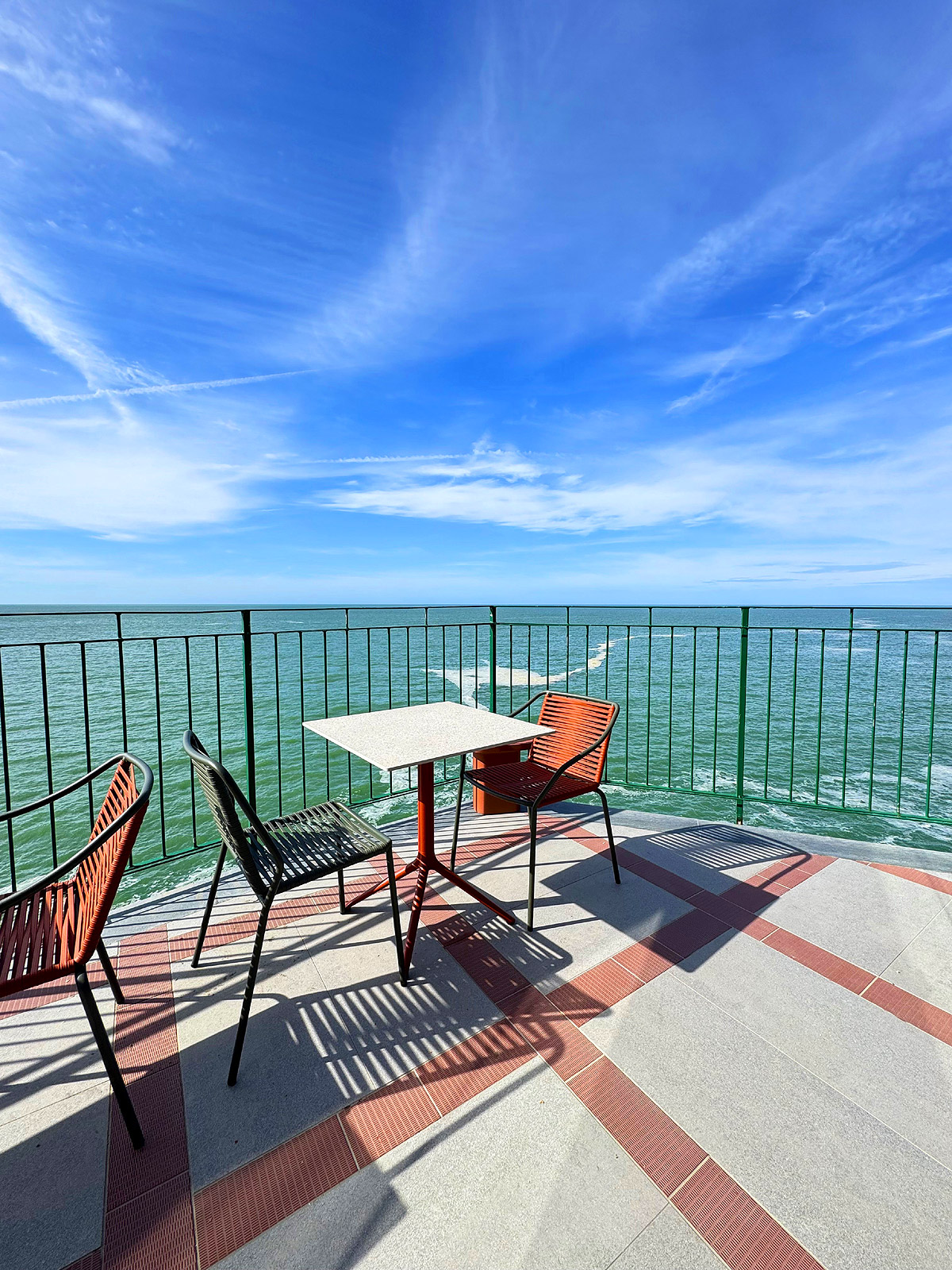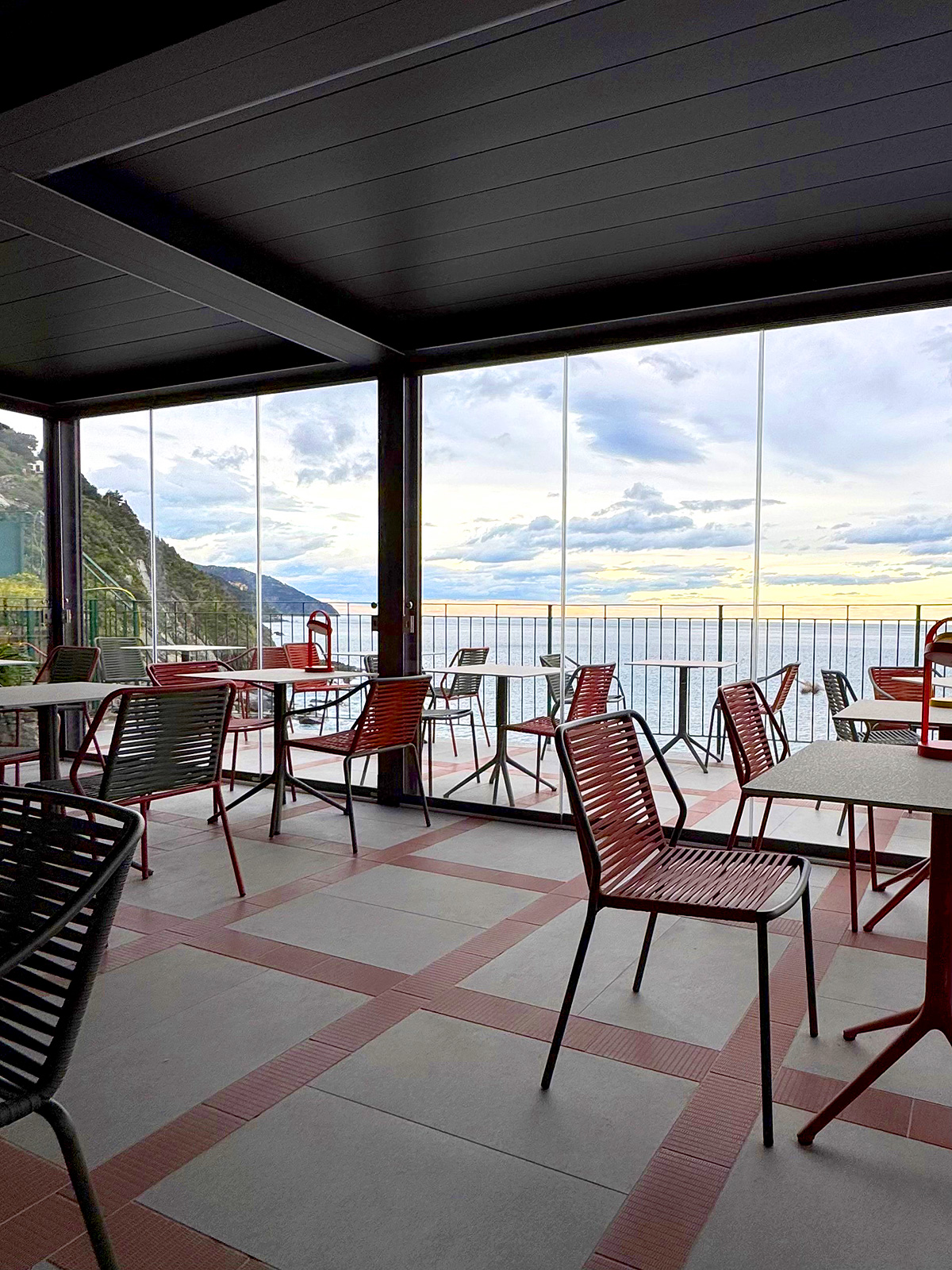 Seduti ai tavoli il panorama offerto non è comune, a tratti si ha l'impressione di essere sulla prua di un transatlantico.